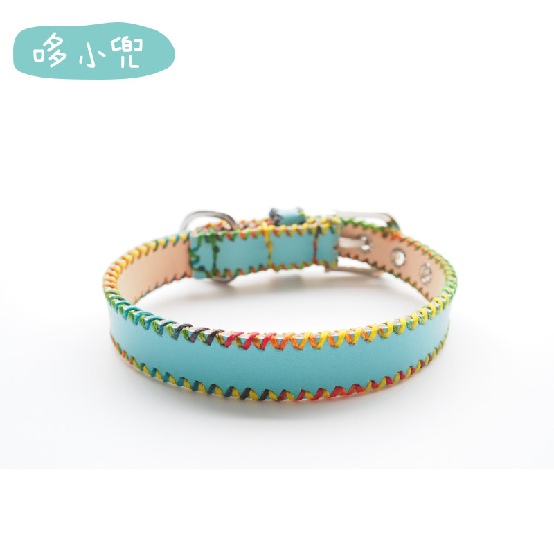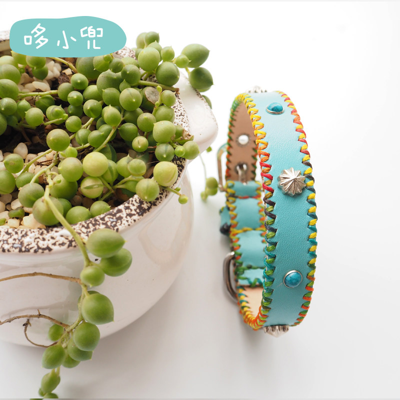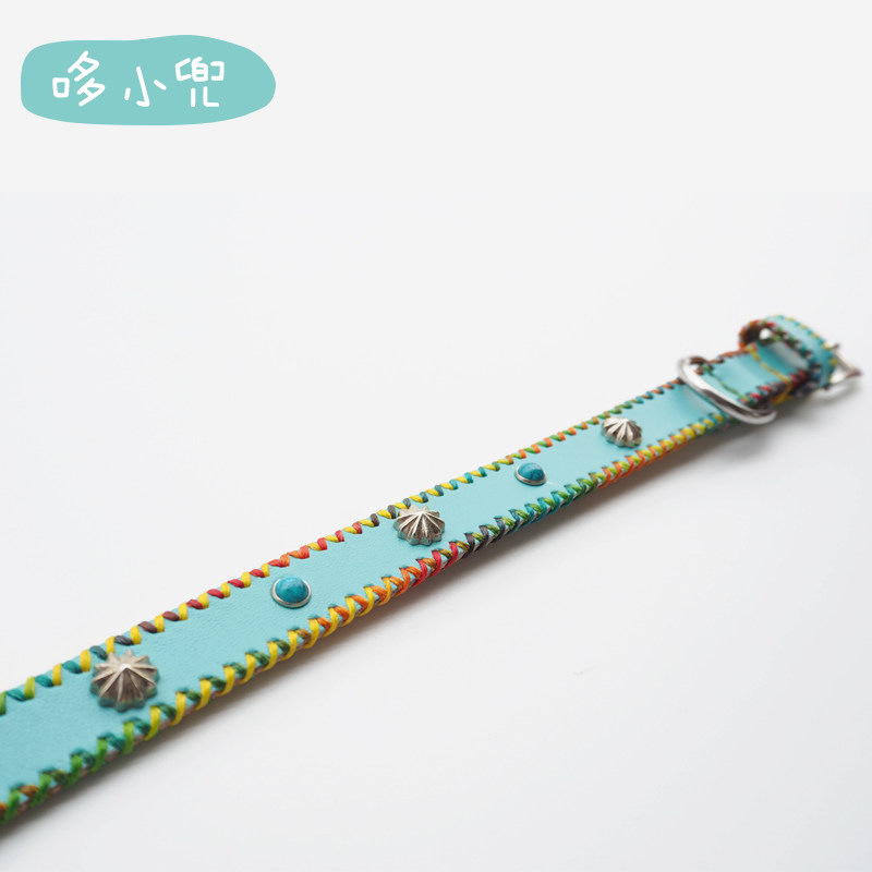 Dooxidi hand custom leather collar pet cat teddy than bear gold cowl double sky blue collar