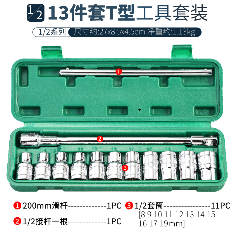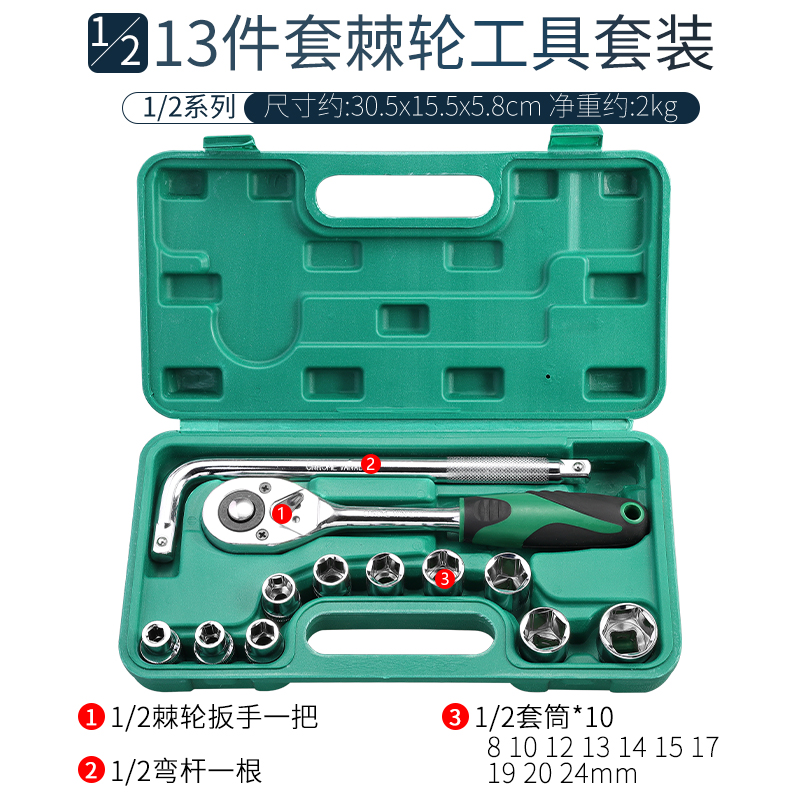 Reinforced 10 pieces sleeve 10PCS gray box sleeve 13 pieces large fly ratchet sleeve set set 13 pieces green box interchangeable head sleeve set sleeve