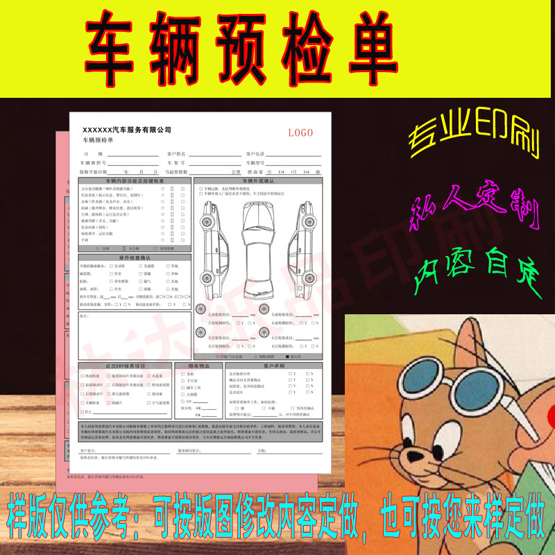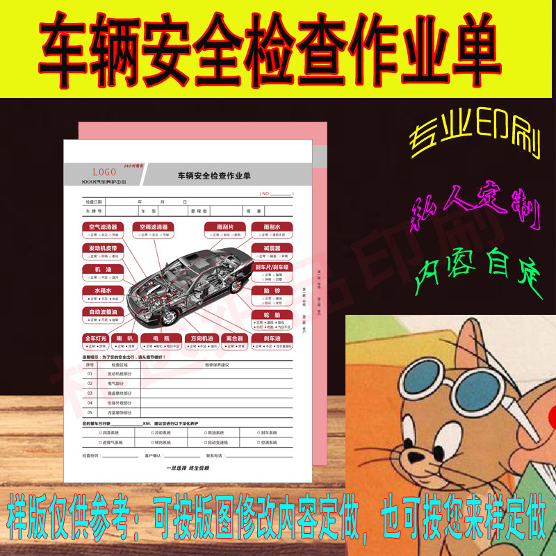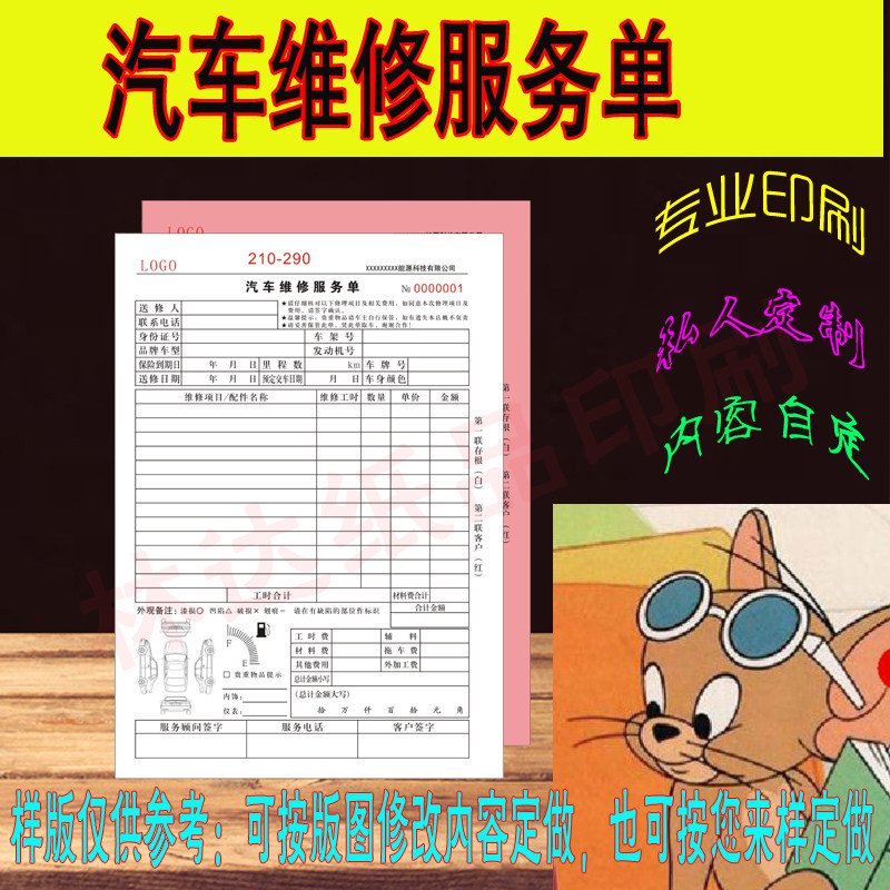 Custom-made car maintenance test sheet Printing repair shop maintenance pick-up work order Beauty maintenance single car wash single