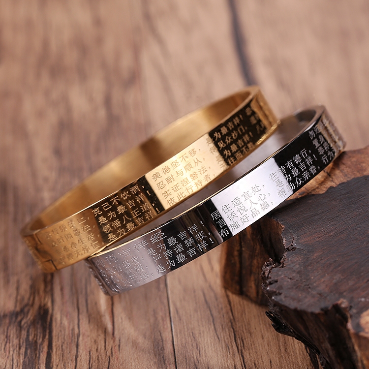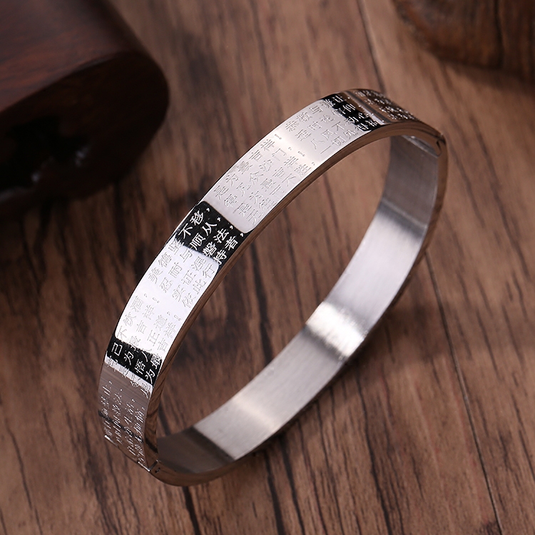 Titanium alloy Buddha says auspicious menstrual bracelet Six words true words with great tragic spell male and female lovers fashion hand ring retro