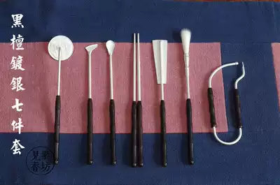 See Su Xiangfang ebony handle silver-plated seven-piece incense fire props empty incense seal incense gift storage bag R703S