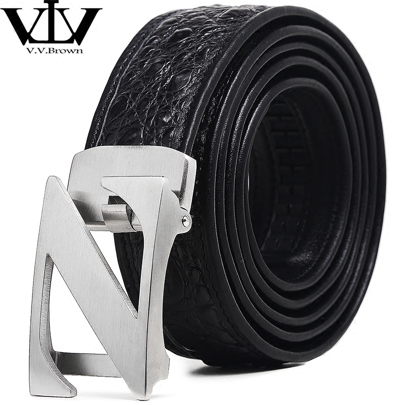 V V Brown stars endorsed the leather crocodile skin stainless steel 3 5cmZ character automatic buckle star belt