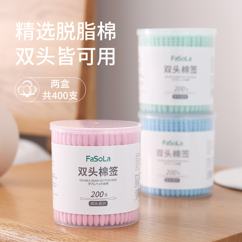 Set of two boxes Buy two sets of cotton stick white (double round head) multifunction cotton stick white (round tip) multifunction cotton stick cotton stick powder (round pointed) multifunction cotton stick cotton stick green (round