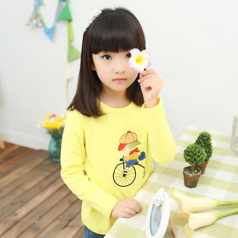 Cycling Spring Autumn Pink Bike Spring Autumn White Bike Spring Autumn Yellow Girl Children Long Sleeve T-shirt Fowbag Color Pattern Random Hair Spring Fall without velvety