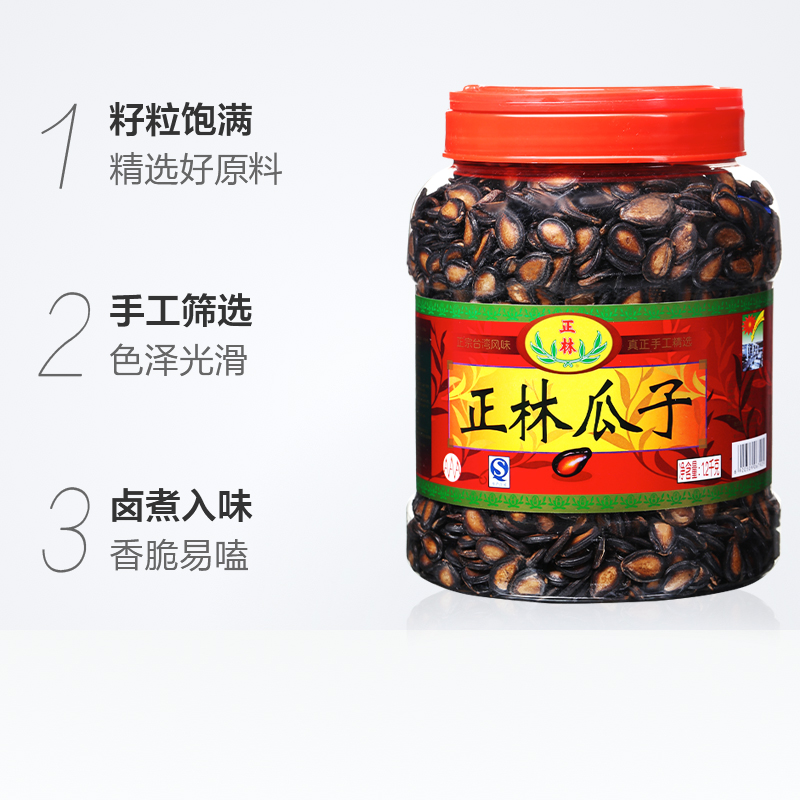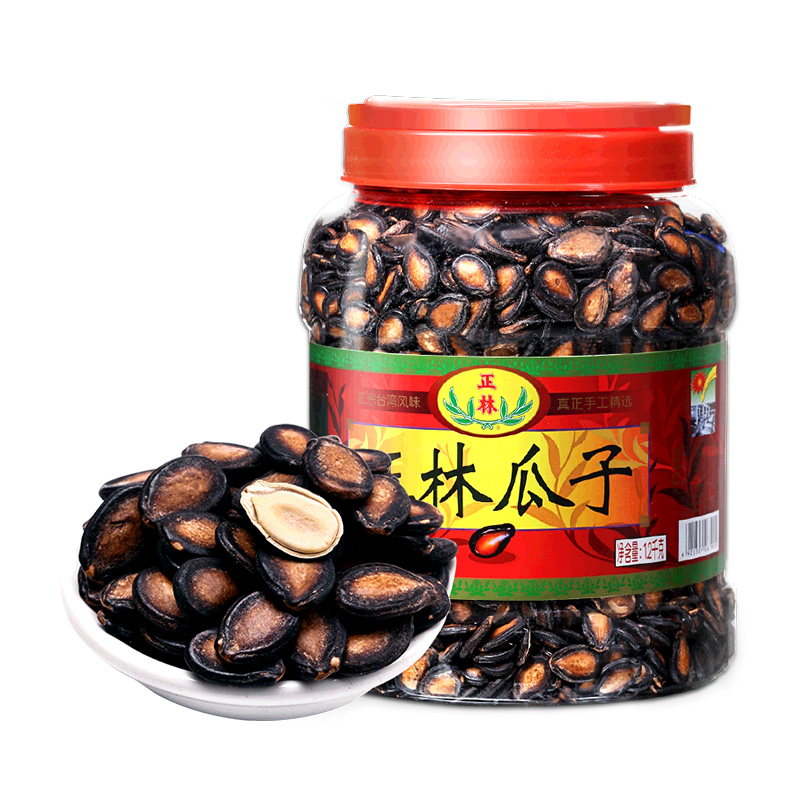 Zhenglin 3A grade watermelon seeds 1200 grams barrel of black melon seeds melon seeds fried goods a large bucket of snack snack food