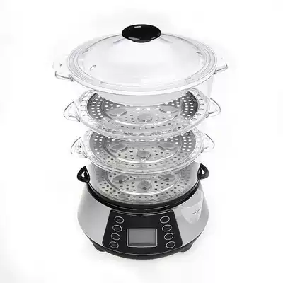 Aigley round multifunctional transparent three-layer large-capacity electric steamer household energy-saving and anti-drying timing electric steamer
