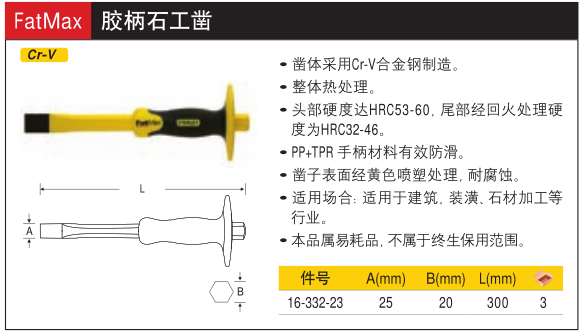 Stanley tool FatMax rubber handle stonework chiseled cold chisel 16-332-23 Cement ice drill head chisel-Taobao