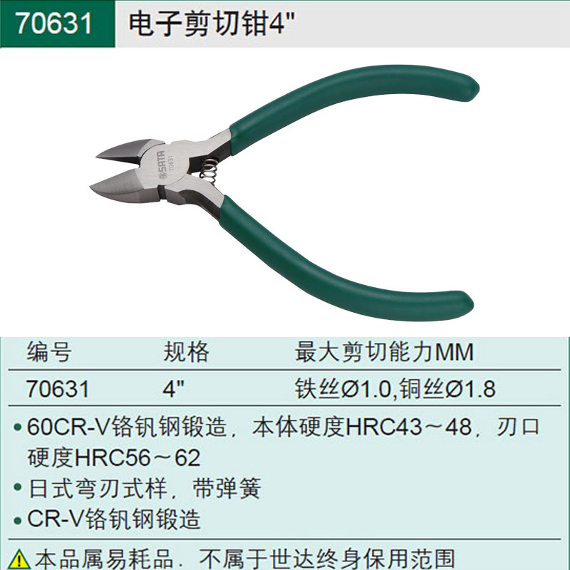 Shida Hardware tools Electronic scissors Oblique mouth pliers Oblique mouth pliers 4 inch pliers Iron copper wire scissors Network wire pressure pliers 70631