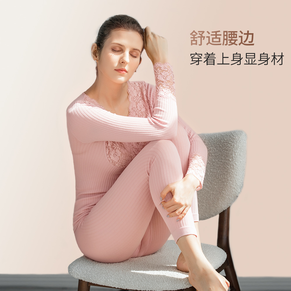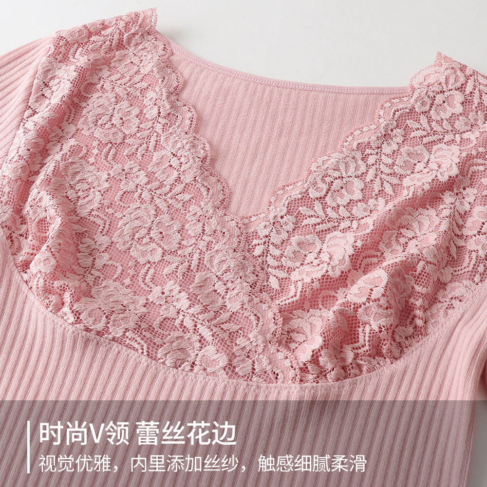 Heating fiber heating clothing women's thin sexy lace V-neck slim body shaping autumn clothes bottoming top