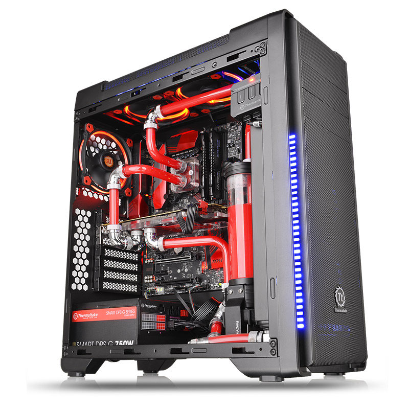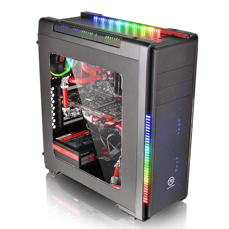 Tt night attack ATX computer case water-cooled main case 7-color light bar fan speed control support long graphics card