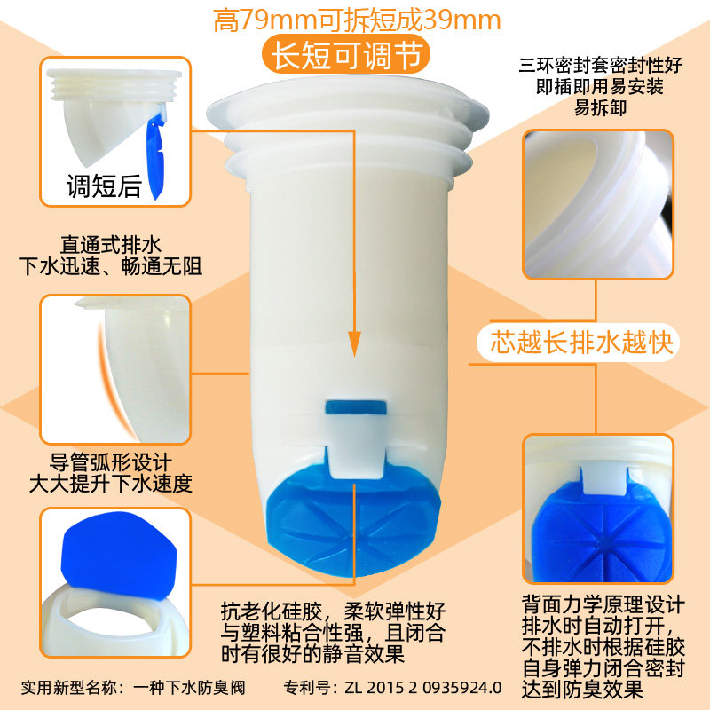 Bongo thin model displacement transformation copper anti-odor floor drain toilet shower washing machine floor drain 405075 pipe use