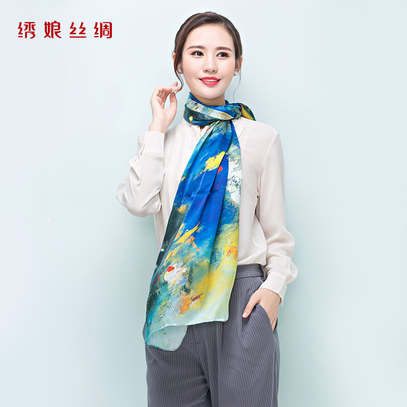 Embroidered silk weighing real silk big shawl shoulder mulberry silk scarves scarf spring and autumn women silk satin fashion send middle-aged gift boxes