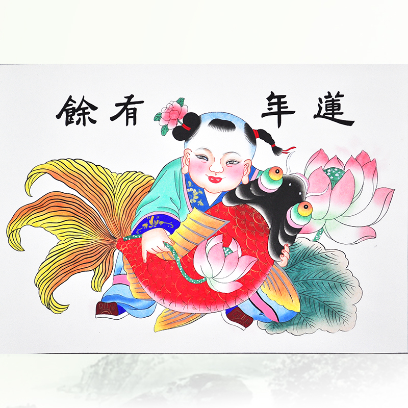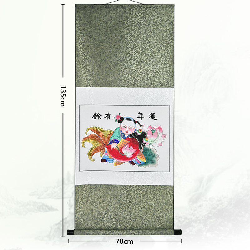 Tianjin Yangliu Youth painted lotus more than a year Classic hand-painted axis painting Business gift pendant wall hanging object