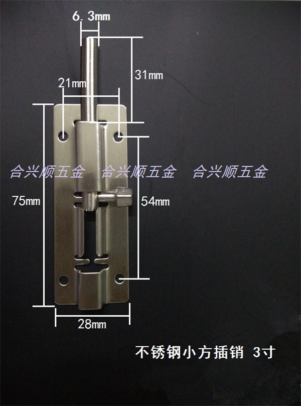 Combination Xingshun 1 5 ~ 6 inch small square stainless steel bolt door lock button security door bolt Ming bolt