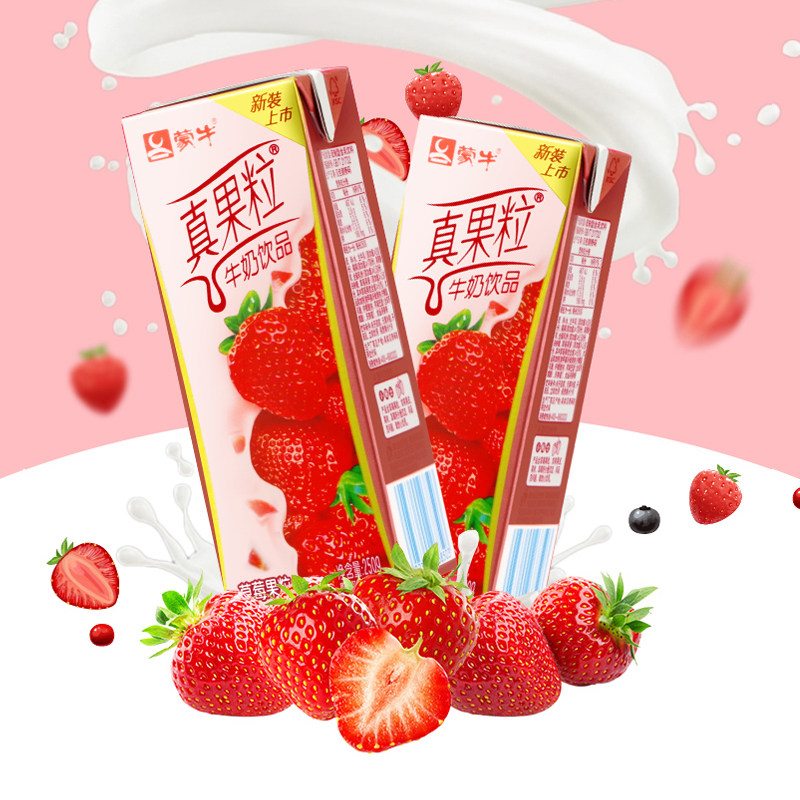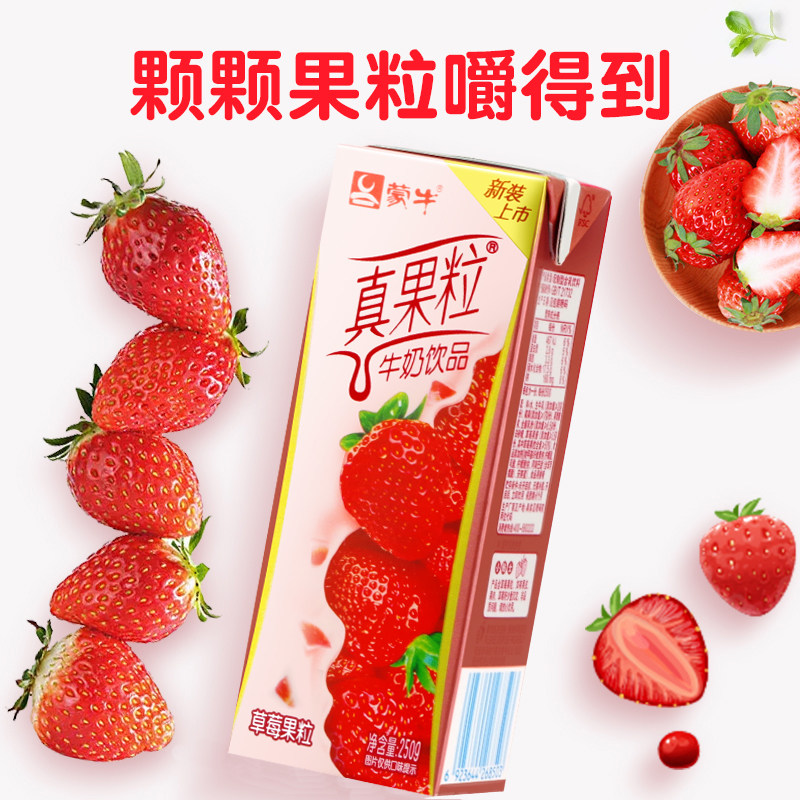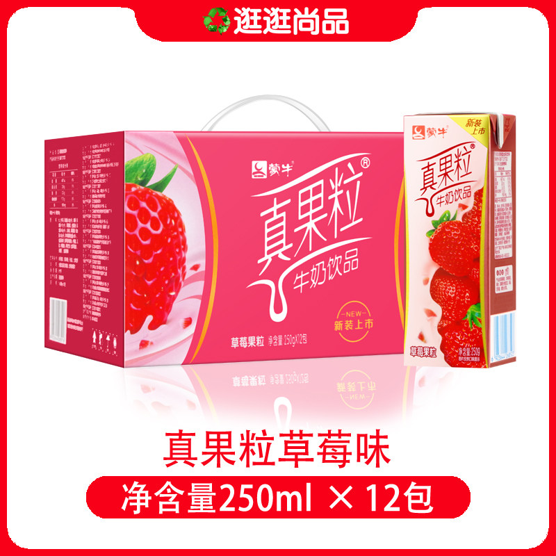 October production of Mengniu real fruit strawberry flavor 250g * 12 boxes of nutrition FCL discount promotions to save more