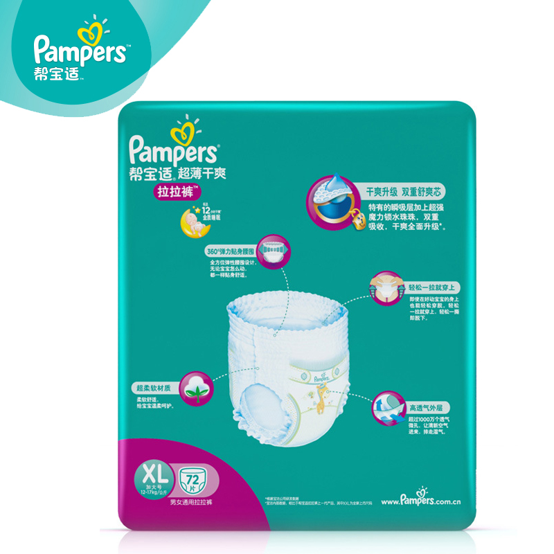 Pampers pull pants Ultra-thin dry pull pants XL72 men's and women's treasure universal baby pull pants