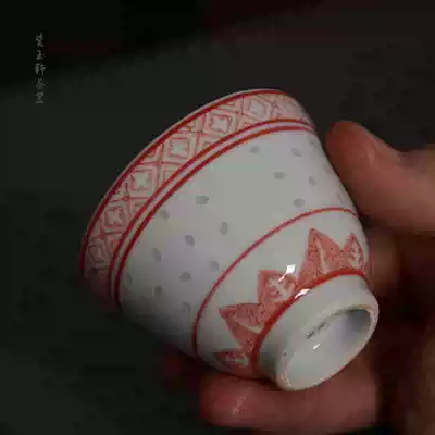 Jingdezhen Porcelain Yuxuan Ceramics Old Guangming Porcelain Factory 80 s Floating Under Glaze Linglong Golden Bell Cup Three-cylinder Cup Single