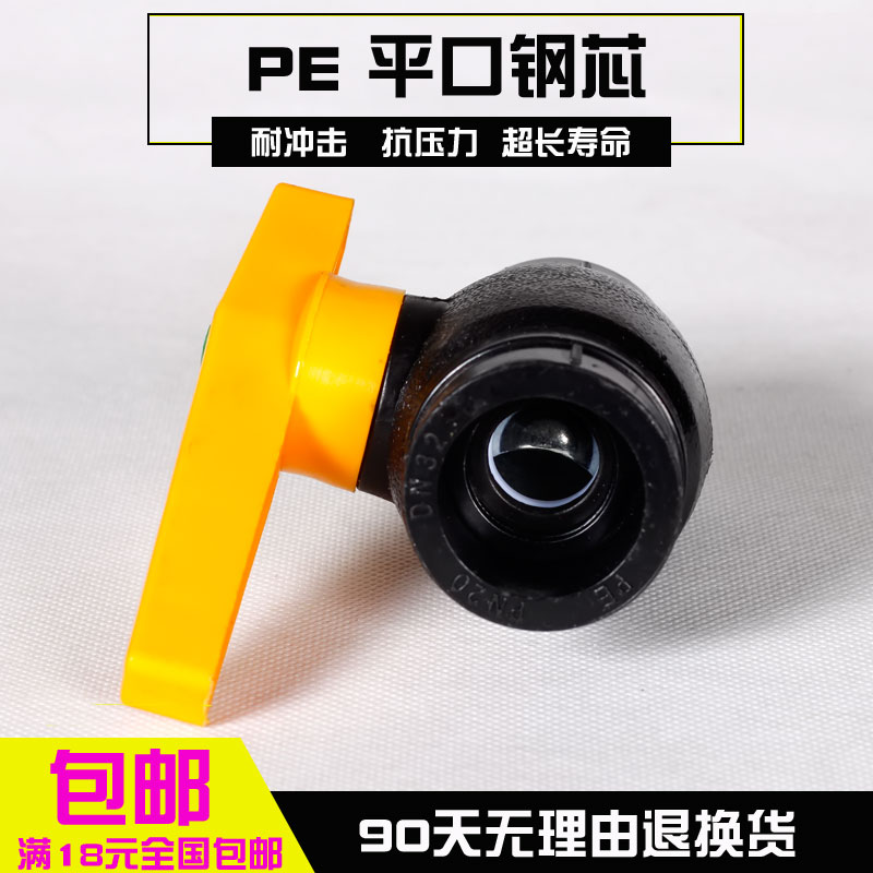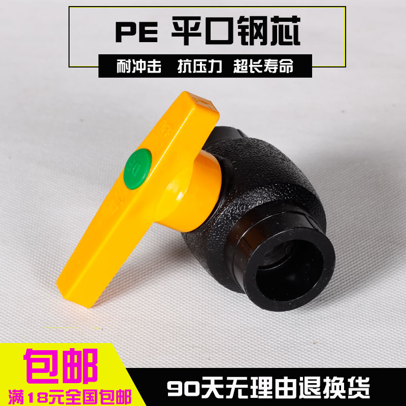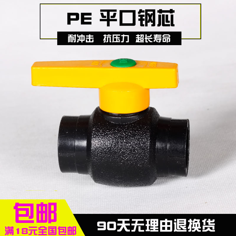 Hot fusion ball valve black PE pipe fittings tap pipe flat steel core ball valve DN 20 to 110 high pressure pipe parts