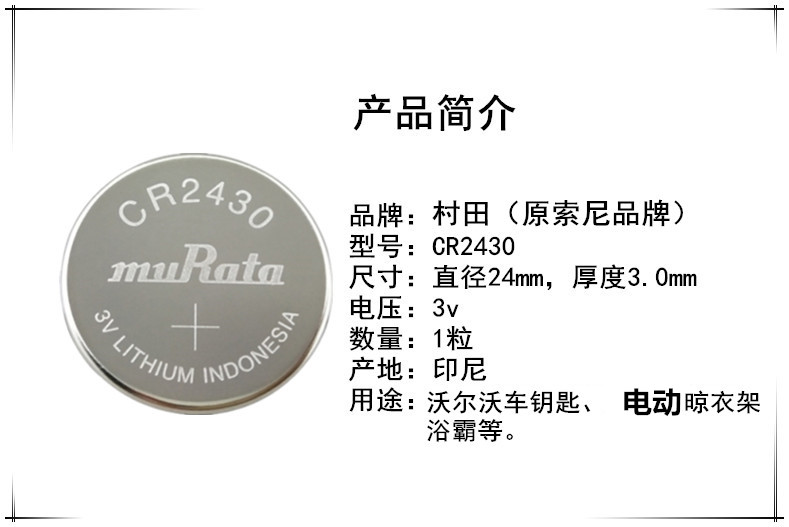Volvo CR2430 S60V40XC9xc60s80l car remote control key electric clothes hanger battery