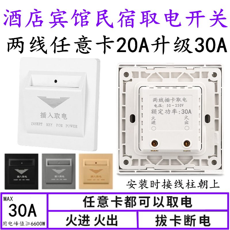 Type 86 Two-wire insert electric switch 30A ARBITRARY CARD 2 WIRE GUESTHOUSES HOTEL TAKE ELECTRIC SWITCH WITHOUT TIME-LAPSE PANEL