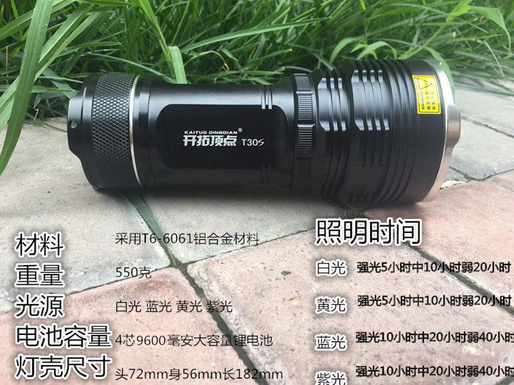 Pioneering Apex Fishing Light Night Fishing Light T30S Quad Light Source Variable Focal Black Pit Casual Wild Fishing Light Blue Light