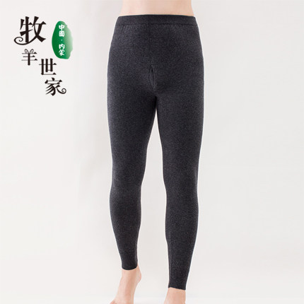 Autumn and winter full wool pants men's thin section seamless stickers slim fit large size middle-aged youth underwear line sanitary pants warm cashmere pants