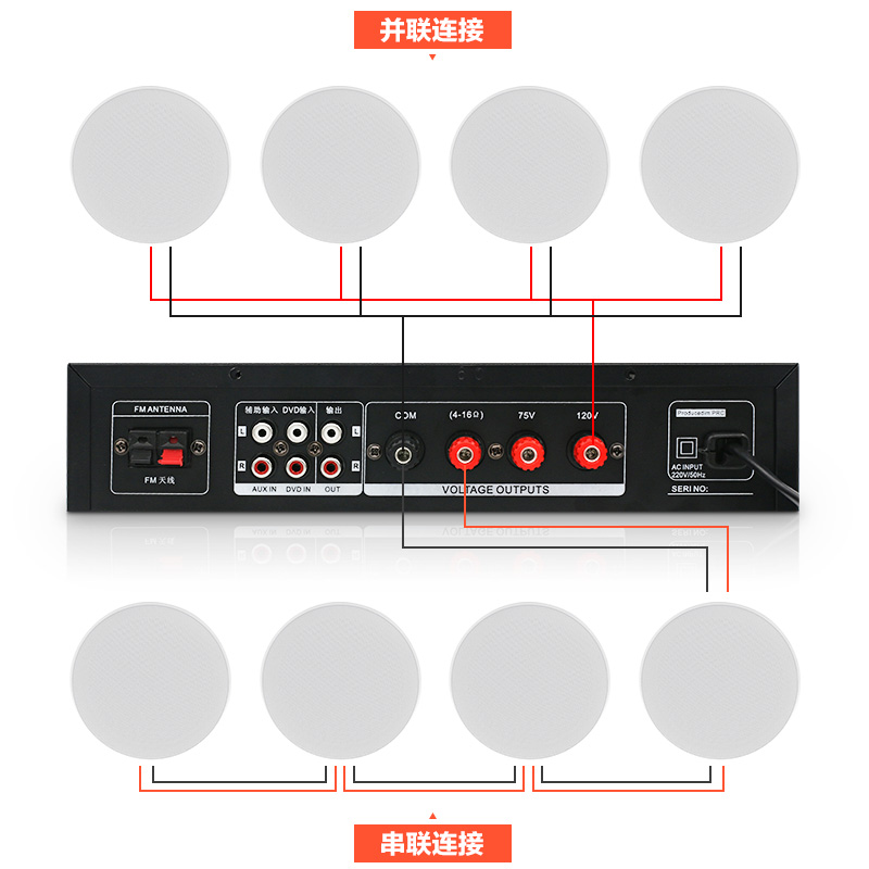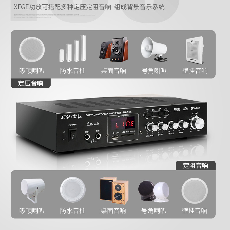 Xiangge amplifier Professional high-power partition audio Bluetooth amplifier Campus fire broadcast speaker air amplifier Shop background music ceiling speaker Home 5 1 fixed resistance public amplifier