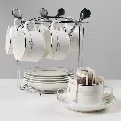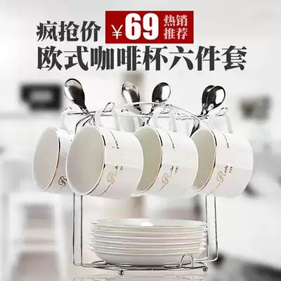 Coffee memory European-style ceramic cup Coffee cup set Simple coffee cup 6-piece set household small luxury coffee cup saucer spoon