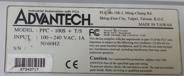 ADVANTECH Advantech PPC-100S T S Touch Industrial Screen Physical Map