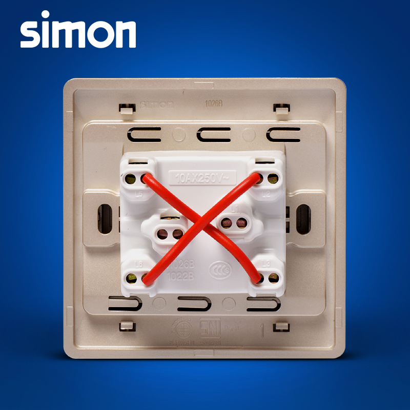 Simon open multi-control switch socket panel 55 series Champagne golden two-way reversing switch midway switch