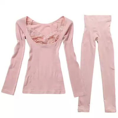 Japan single heating fiber heating clothes women's suit Lace body shaping body clothes low-neck nursing autumn clothes sanitary pants