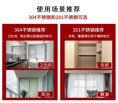 Thickened 304 stainless steel wardrobe hanging curtain rod shower curtain rod fixed cabinet single pole balcony clothes drying Rod