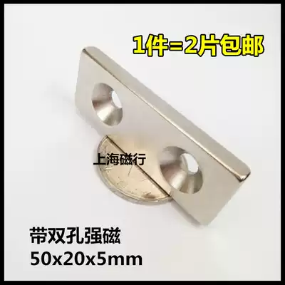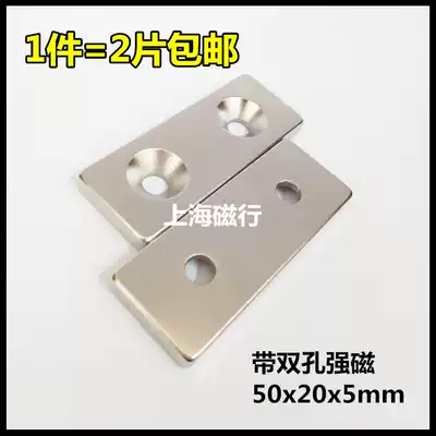 Rectangular magnet with double hole magnet 50*20 * 5mm NdFeB strong magnetic promotion 1 piece = 2 pieces