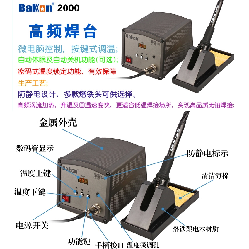 White BK2000 high power 120W high frequency welding table Digital display constant temperature lead-free welding table Electric soldering iron automatic shutdown