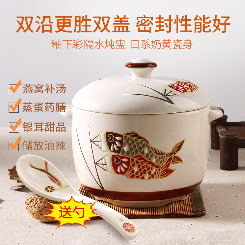 Japan-style ceramic stew small large capacity pot saucepan steamed egg flush riser with lid health care soup saucepan bowl for home