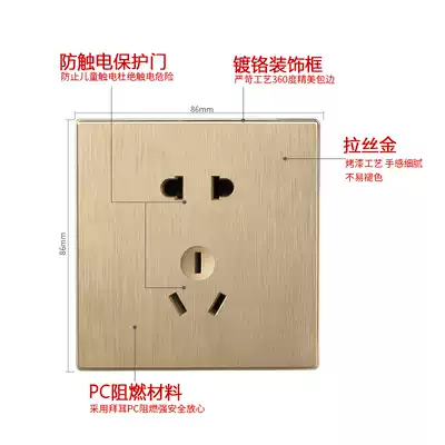 Dunlop Champagne brushed switch socket panel household 86 type two or three plug 5 five five hole power socket 10 sets