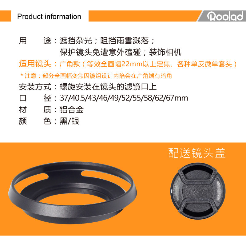 Shade Wide Angle Metal Hollowed-out Black Silver 37 37 39 40 5 40 43 43 46 49 52 55 58 62 62 67mm 67mm