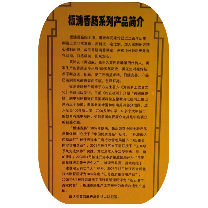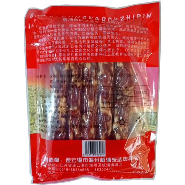 Lianyungang Tefic Yellow Four Hemp Plate Pu Sausage 400 gr Vacuum bagged pork River Zhejiang Shanghai