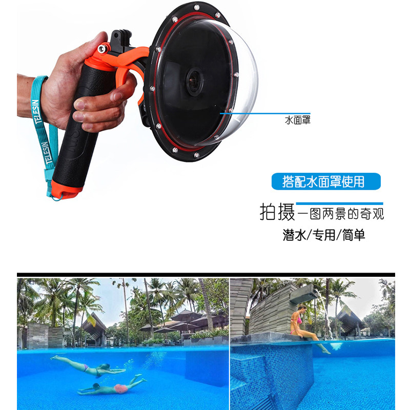 Motion camera gopro10 9 surface lens hood snorkeling spherical dome port water splitting mirror go pro fitting