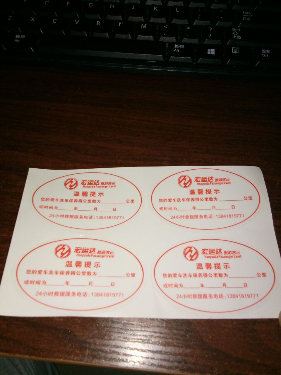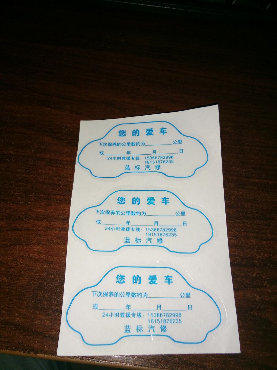 Customized car maintenance tips Static patch custom printing maintenance prompt card " adhesive label