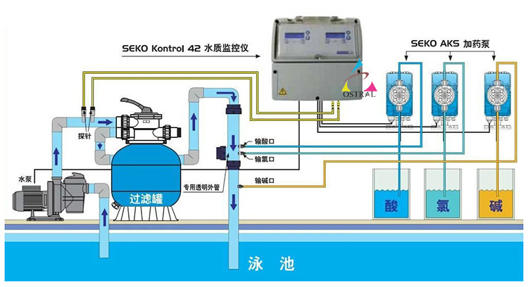Swimming pool equipment Western Section SECKO Water quality monitor PH residual chlorine Automatic detection equipment pool water quality monitoring