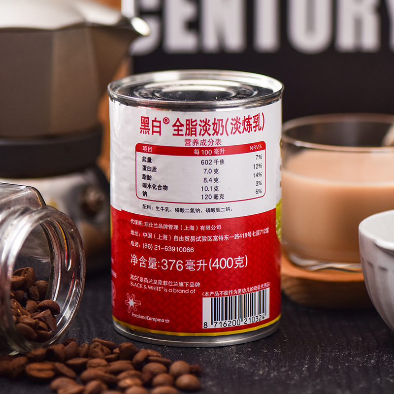 Black and white full-fat evaporated milk 400g Holland imported condensed milk Hong Kong-style stockings milk tea coffee dessert home baking ingredients
