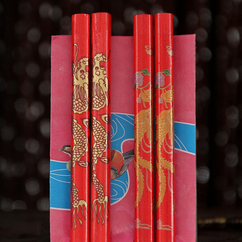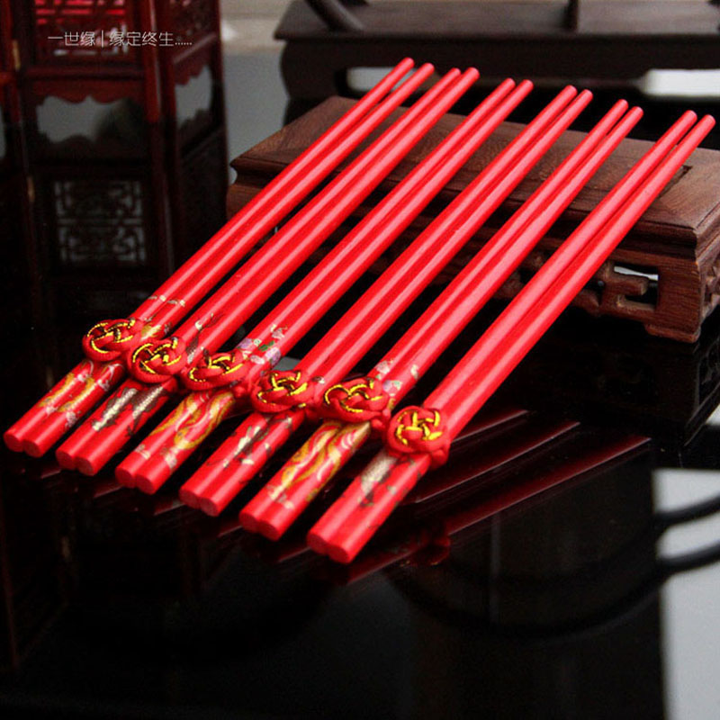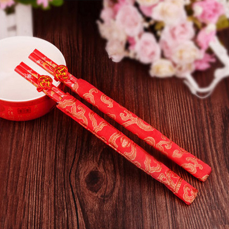 Dragon and Phoenix chopsticks 10 pairs of wedding festive supplies brocade cloth cover red ten pairs of chopsticks wedding banquet wedding props