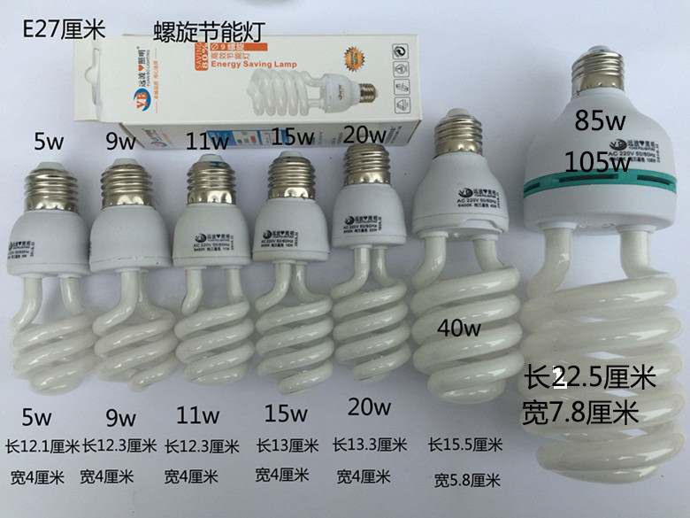 Special price energy-saving lamp spiral 5w9w11w20w105wE27 screw mouth white light yellow light ultra bright household