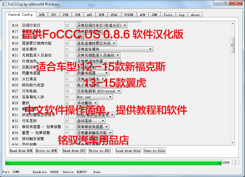 Ford Classic New Fox Wing Tiger Brush Hide Feature Change Switch elm327 Data Line Tire Pressure Drop Lock