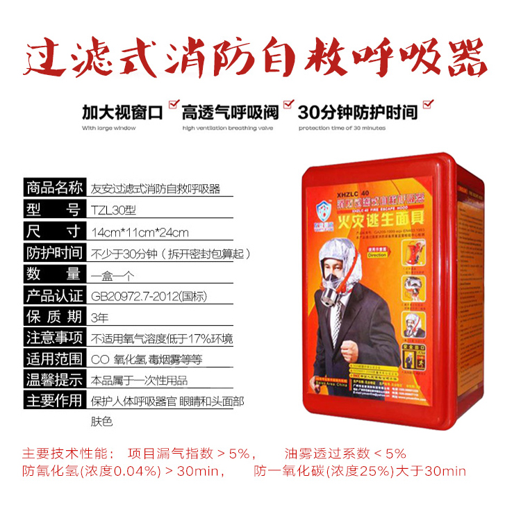 Youan 3C Certification With Fire Marking Anti-Gas Mask Fire Protection Smoke-Proof Smoke Masks