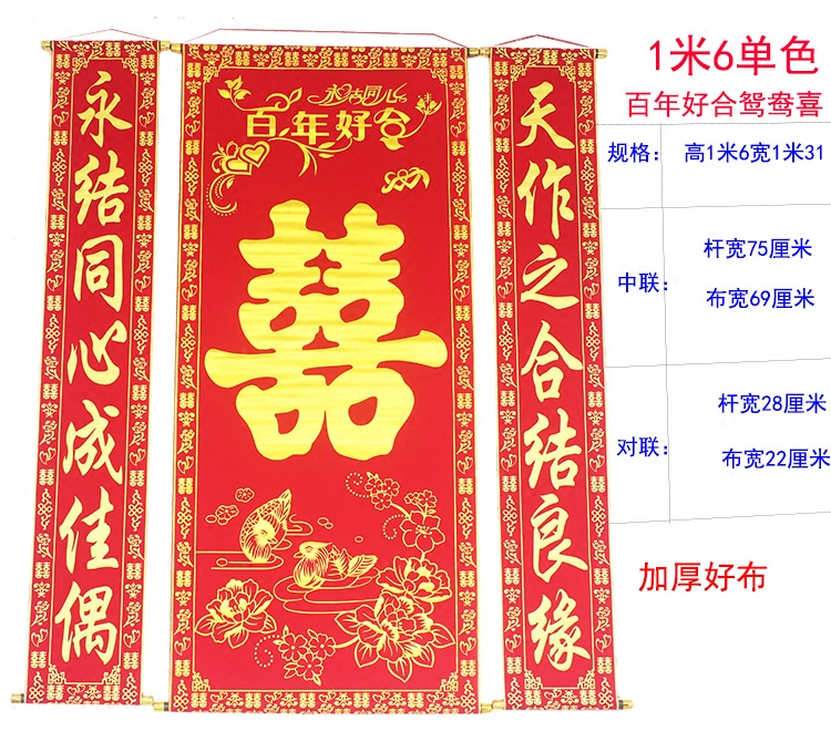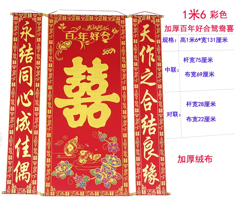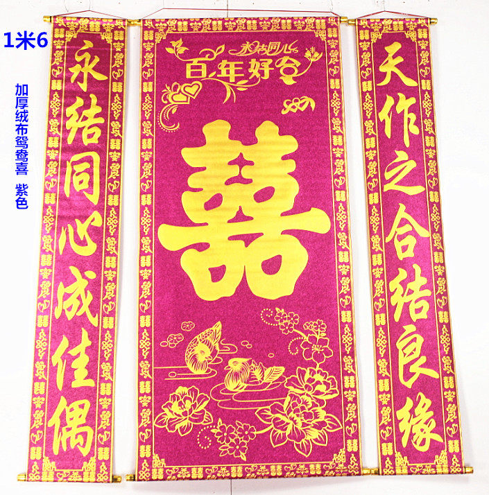 Thickened Flannel Bronzing Wedding Happy Character Middle Church Hanging Painting Wedding Wedding Wedding Wedding couplets hanging up living-room hanging up 1 m 6