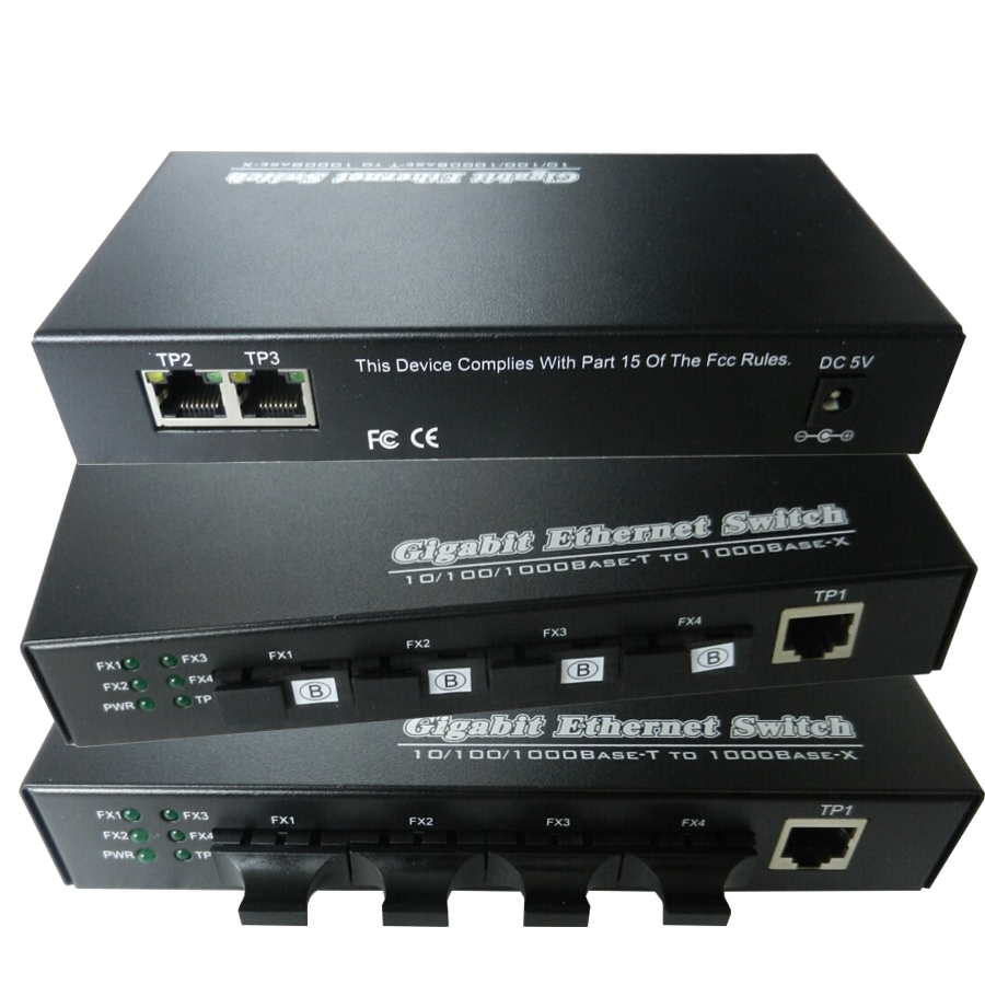 Cascade 4 optical 3 electric fiber transceiver Gigabit single mode single fiber 4 optical conversion switch 3 light 3 power
