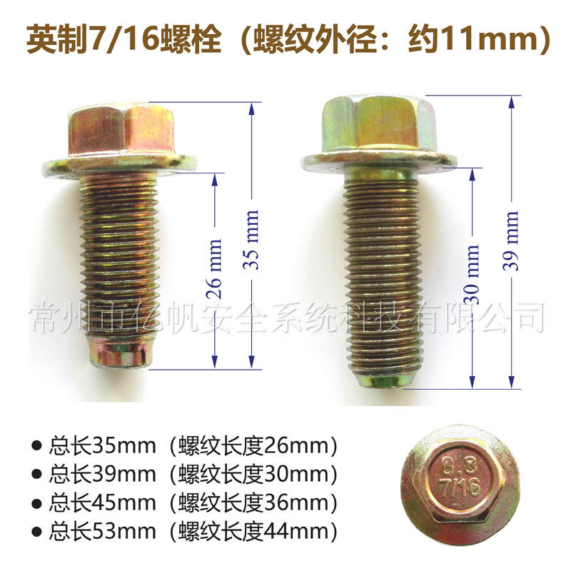8 8 grade 7 16-20 British hexagon flange car seat belt fixed bolt insurance belt dedicated screw