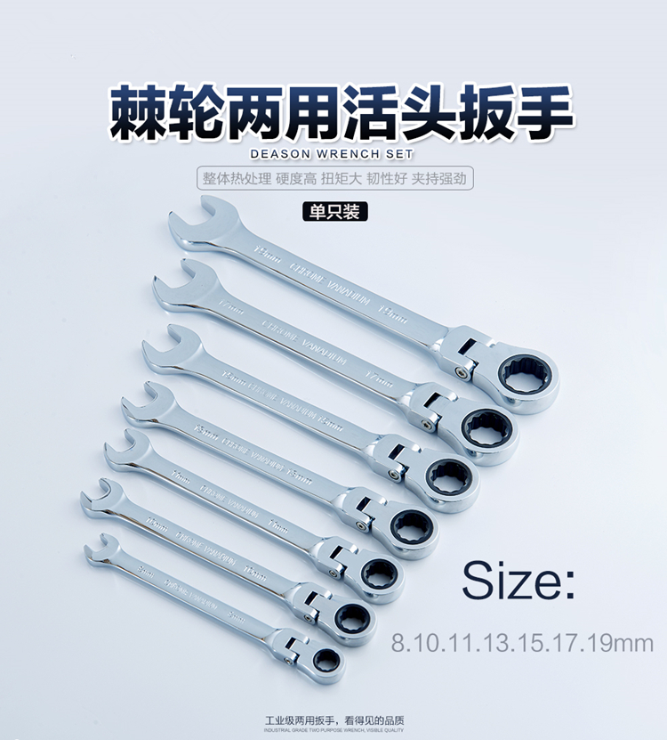 9mm10mm11mm12mm14mm15mm16mm17mm19mm20mm21mm22mm24mm8mm active head ratchet wheel wrench